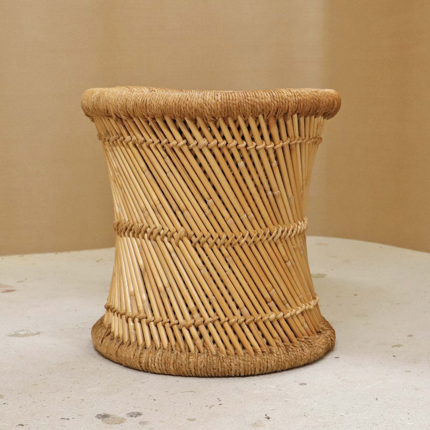 Taburet i bambus og sisal flet