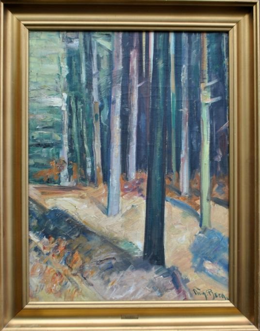 Berg, August Munthe (1858 - 1946) Norge: Skov. Olie på lærred. Signeret. H: 68 cm. B: 52 cm.