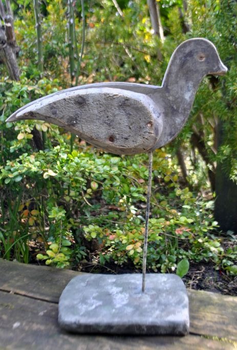 Lokkefugl i bemalet træ, ca. 1920. Danmark. På fod. H: 40 cm. L: 30 cm.