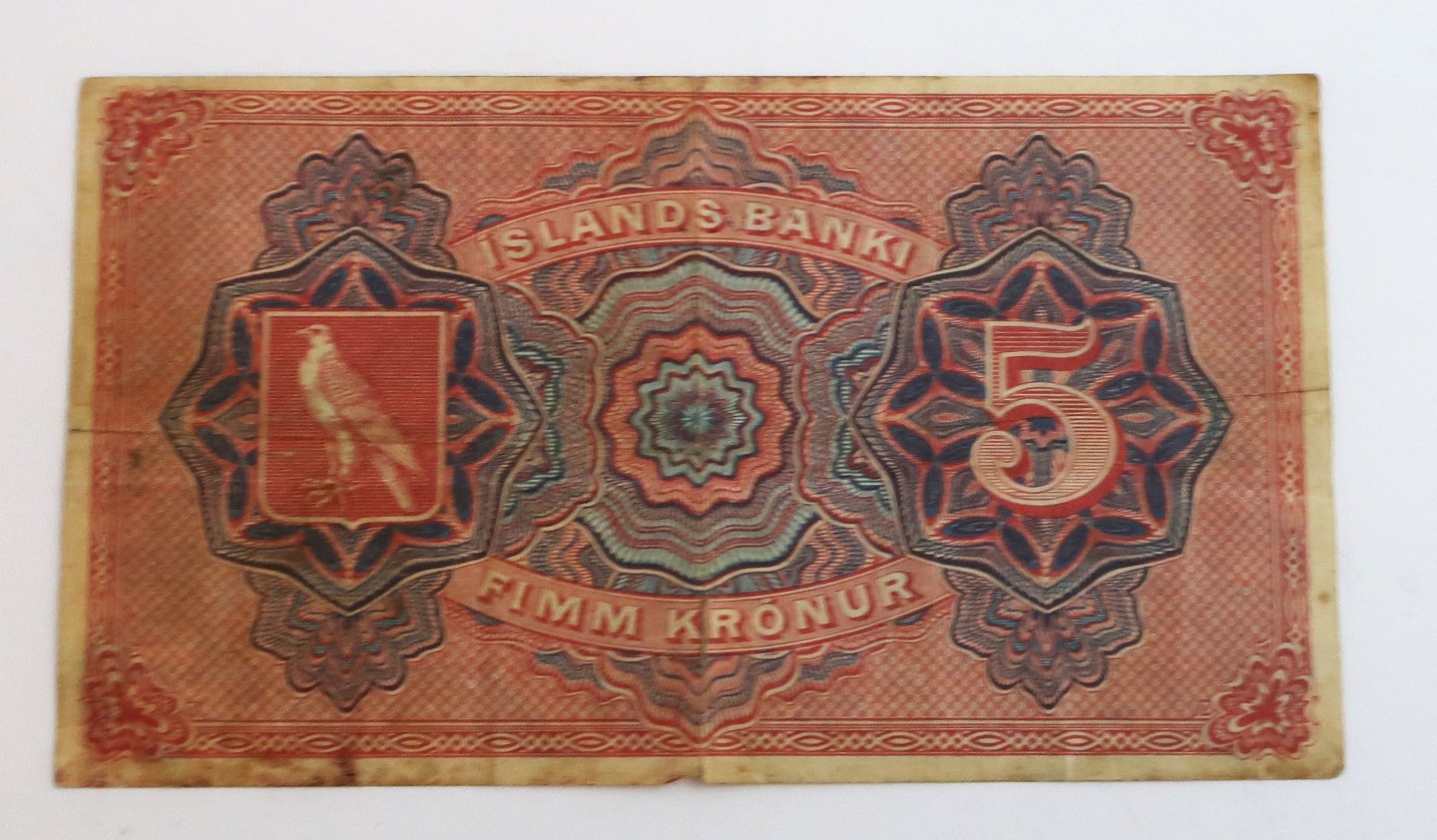 Island. Christian lX. 5 krone pengeseddel 1904. Revne i midten.