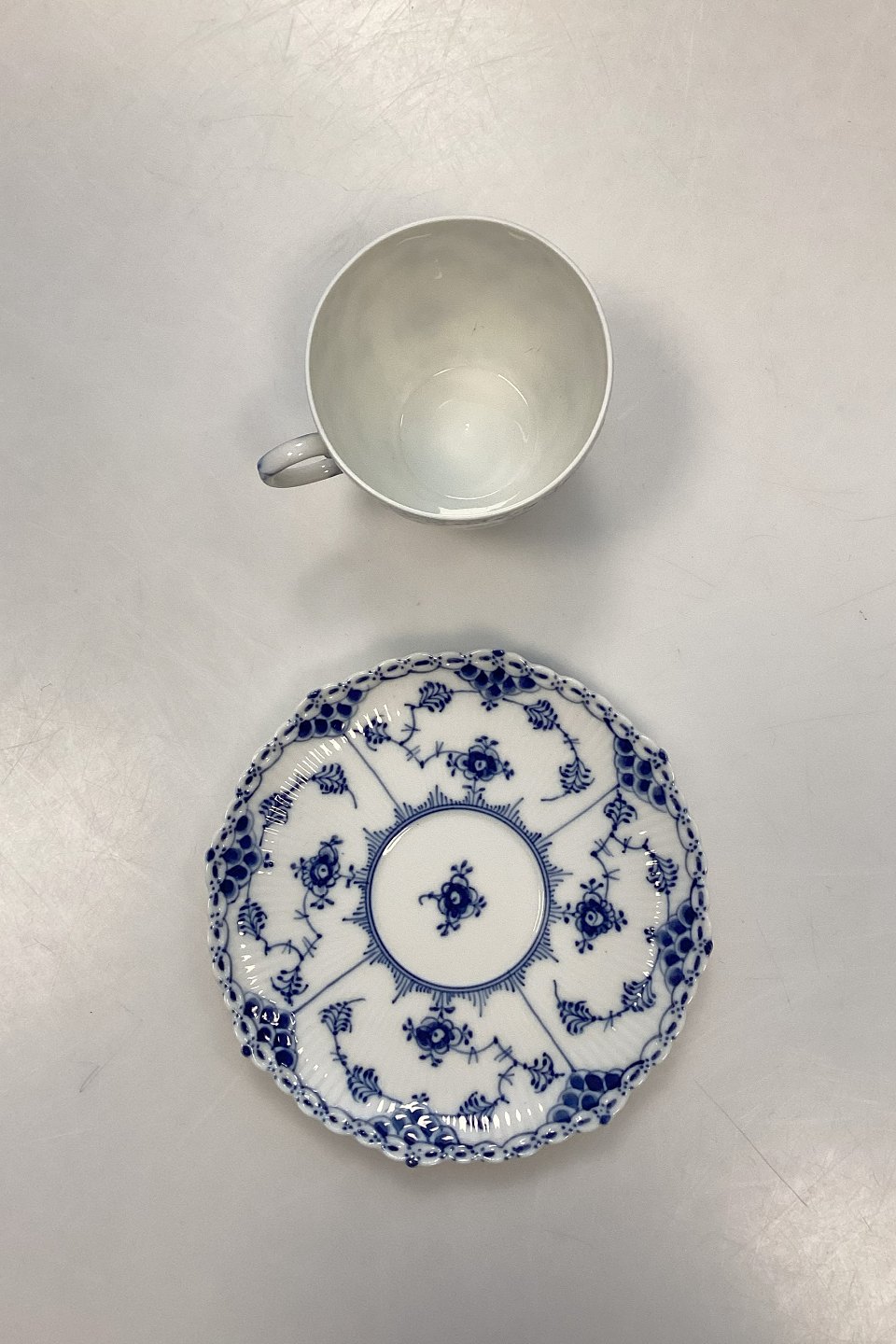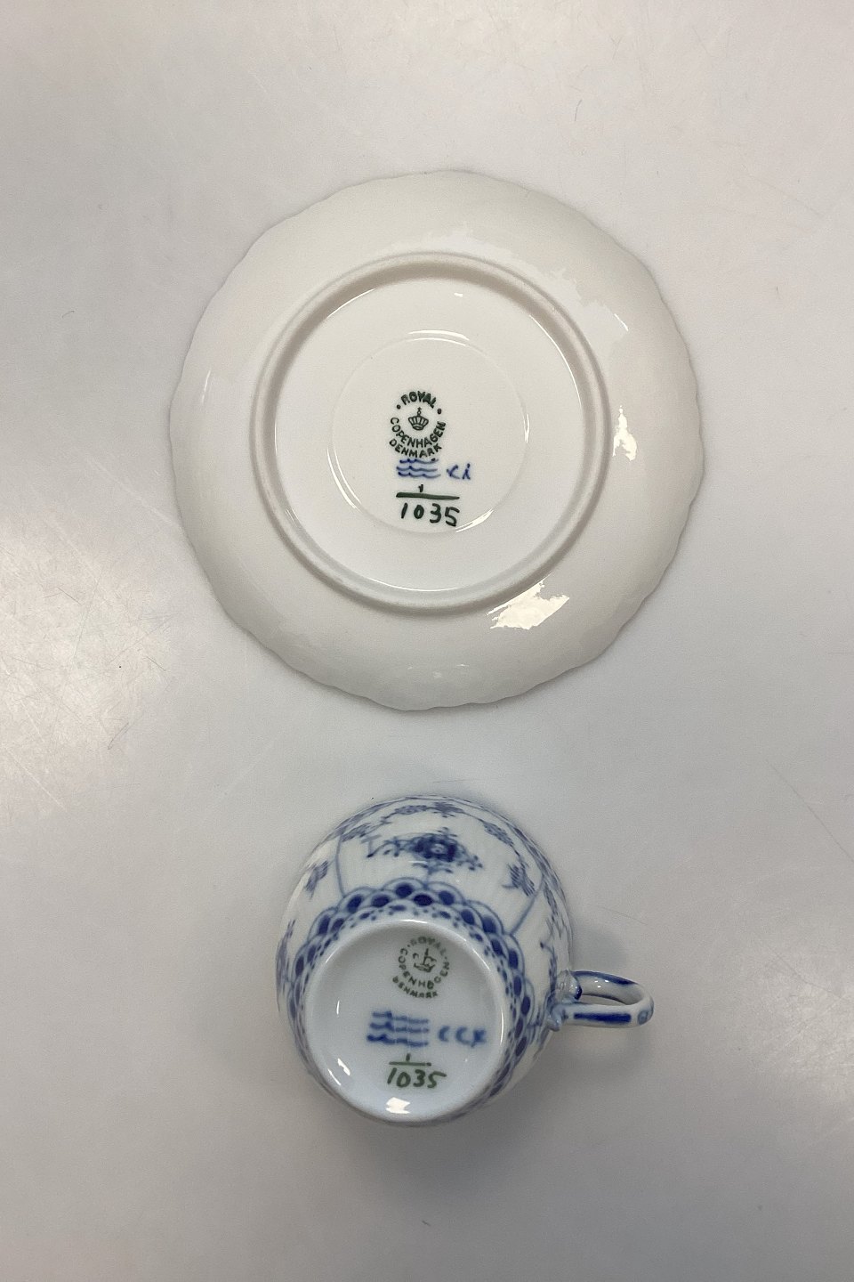 Royal Copenhagen Musselmalet Helblonde Kaffekop og Underkop No. 1035