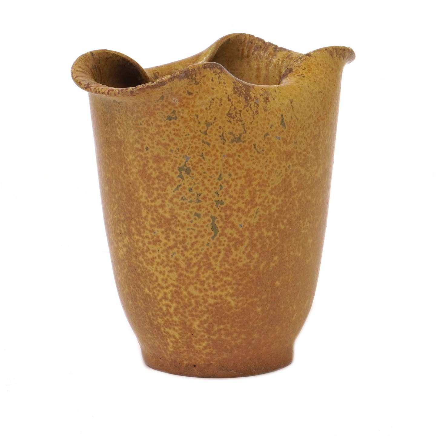 Arne Bang stentøjsvase i stentøj med spættet okkerfarvet glasur signeret AB