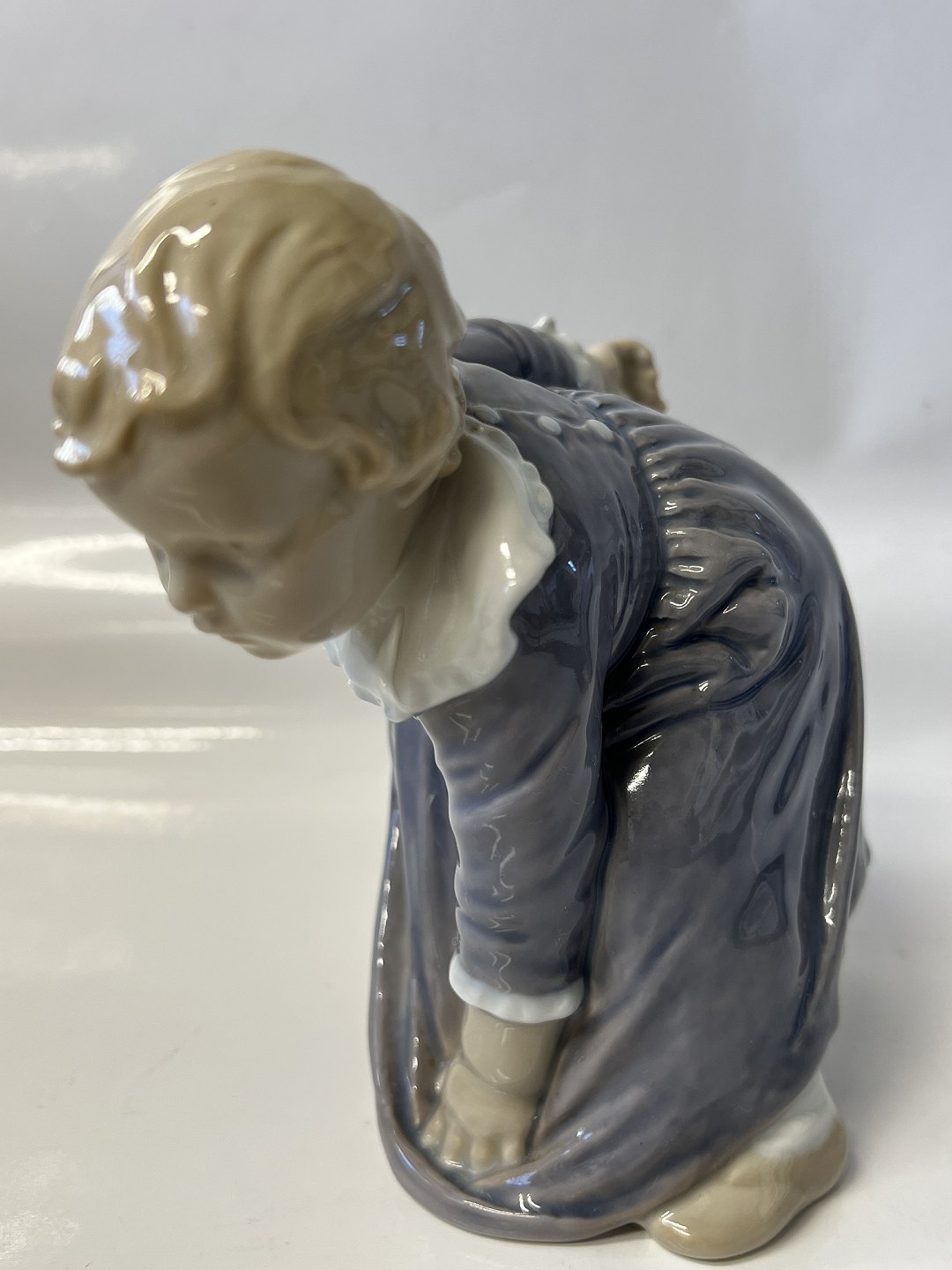 Bing & Grøndahl figur, pige bøjer sig ned.