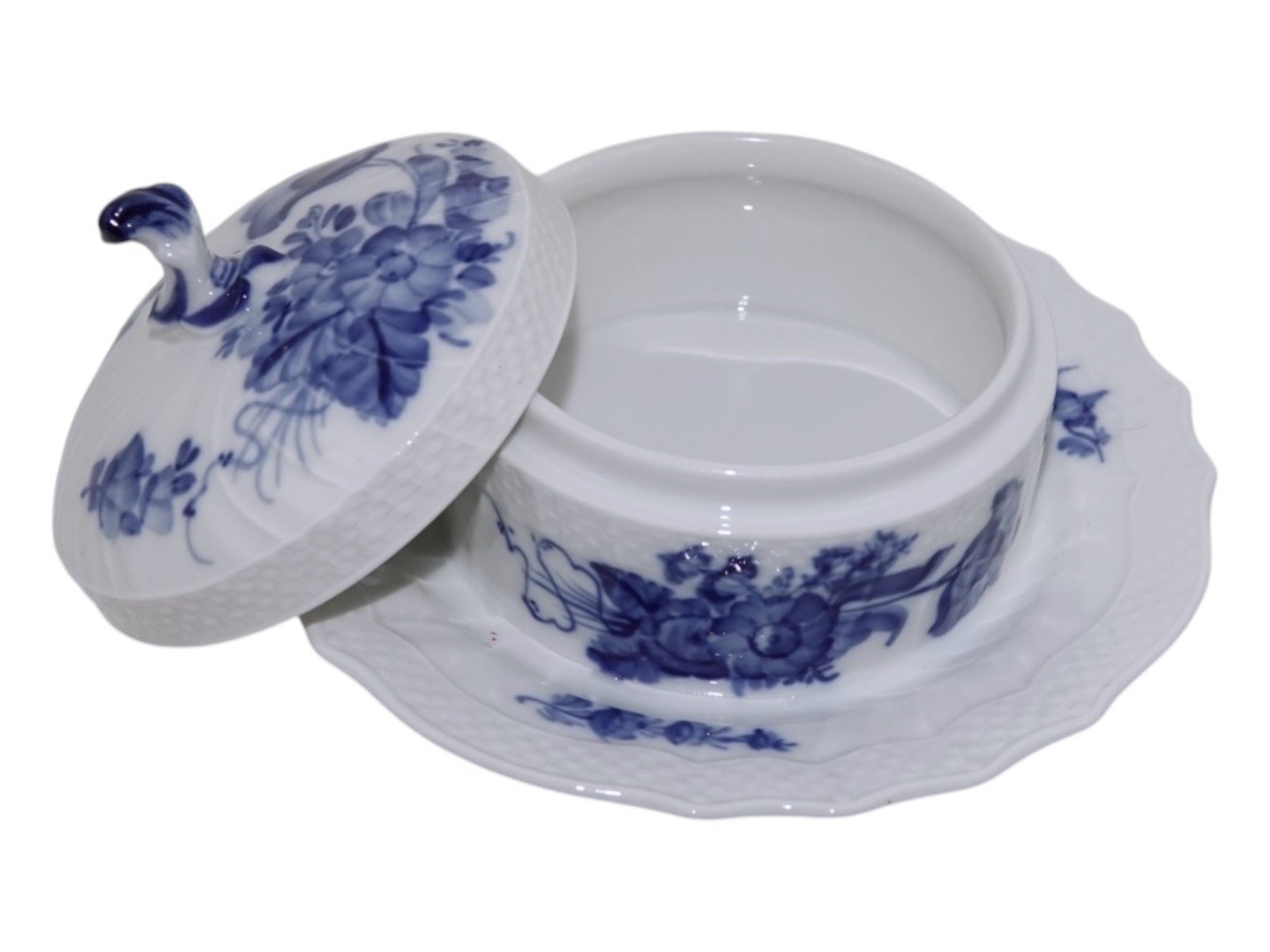 Royal Copenhagen Blå Blomst Svejfet, smørskål på fast fod.