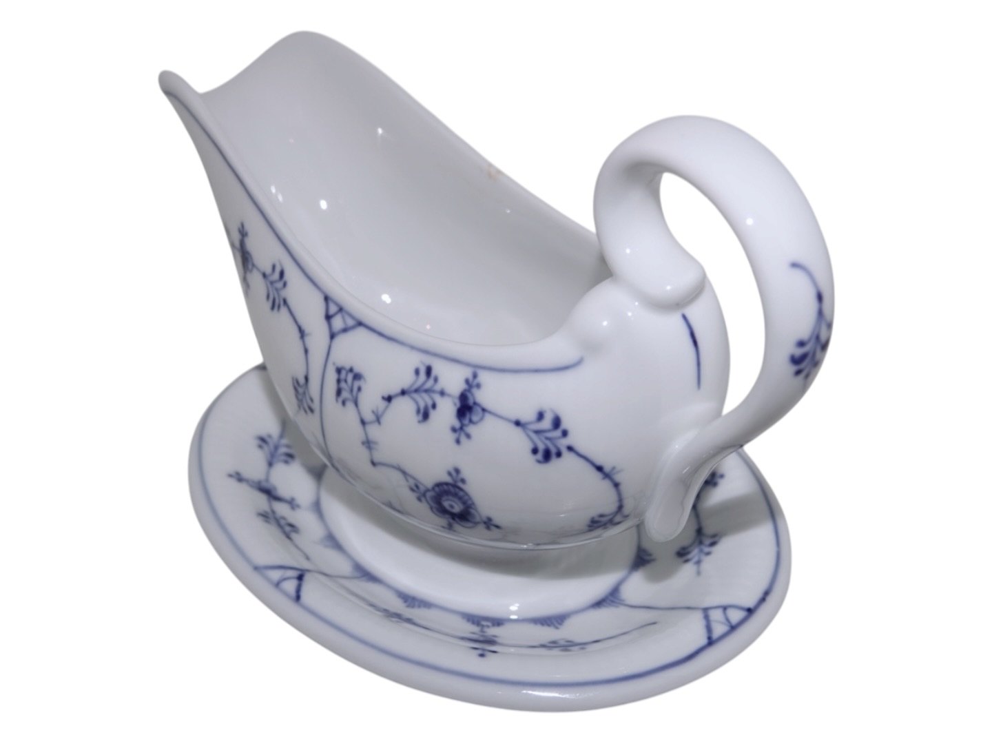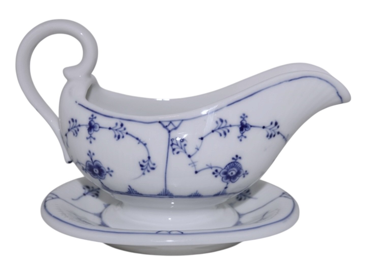 Royal Copenhagen Musselmalet Riflet, sovseskål med fast fod.