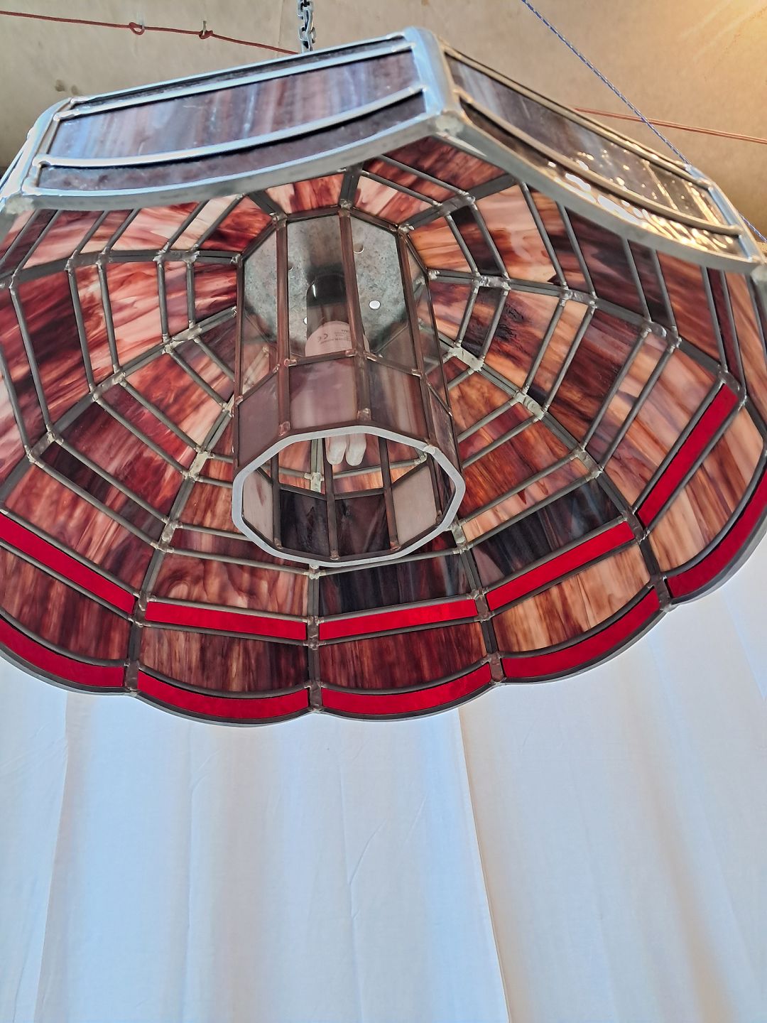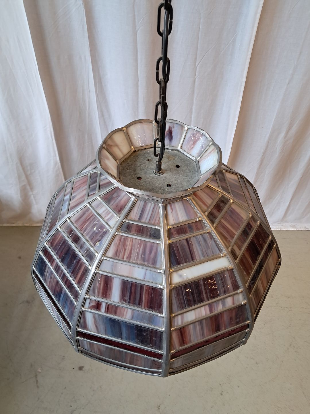 Tiffany loftlampe i glas og metal, fra 1980erne.