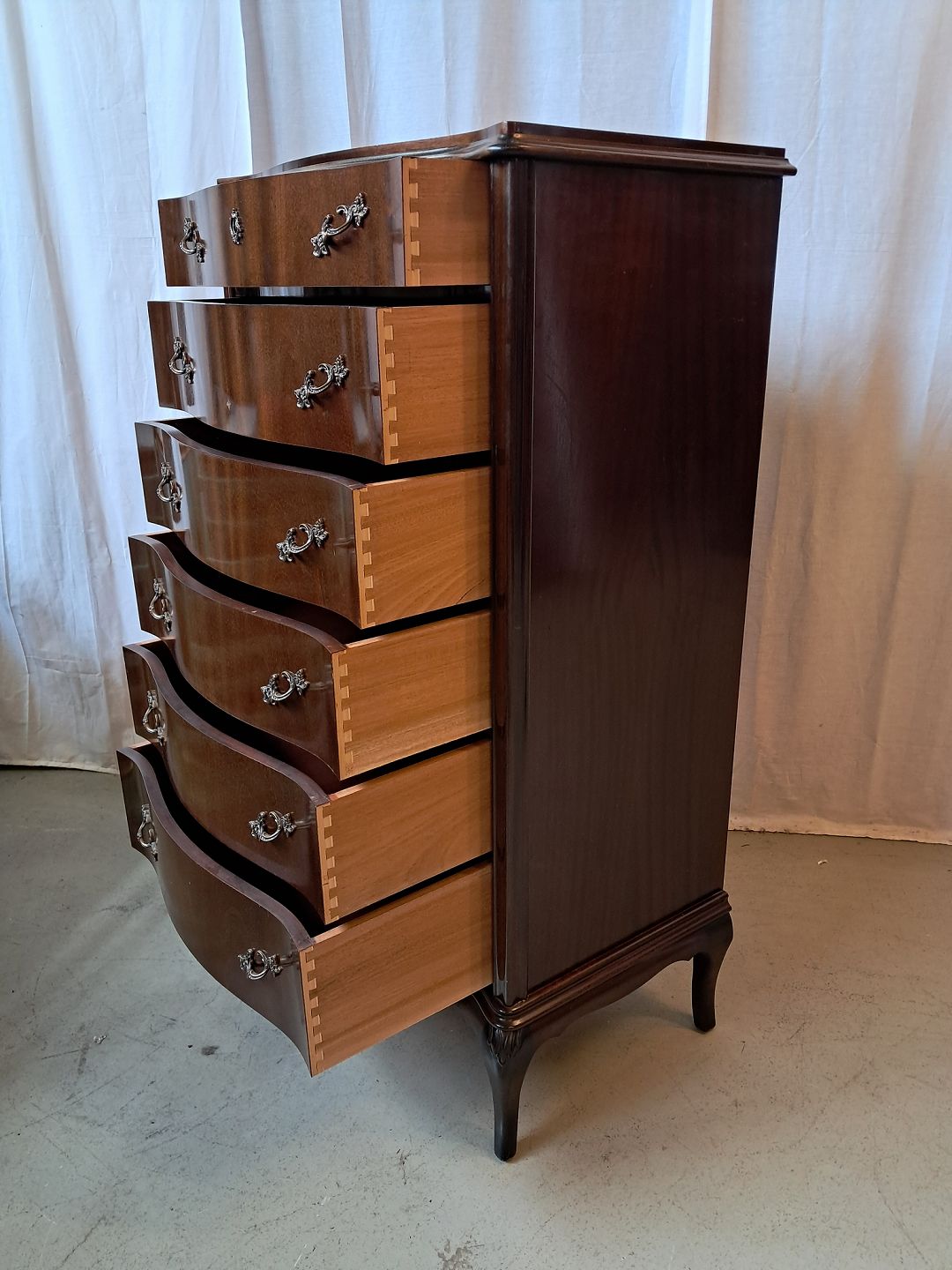 Kommode i fineret nødetræ, fra 1950erne.