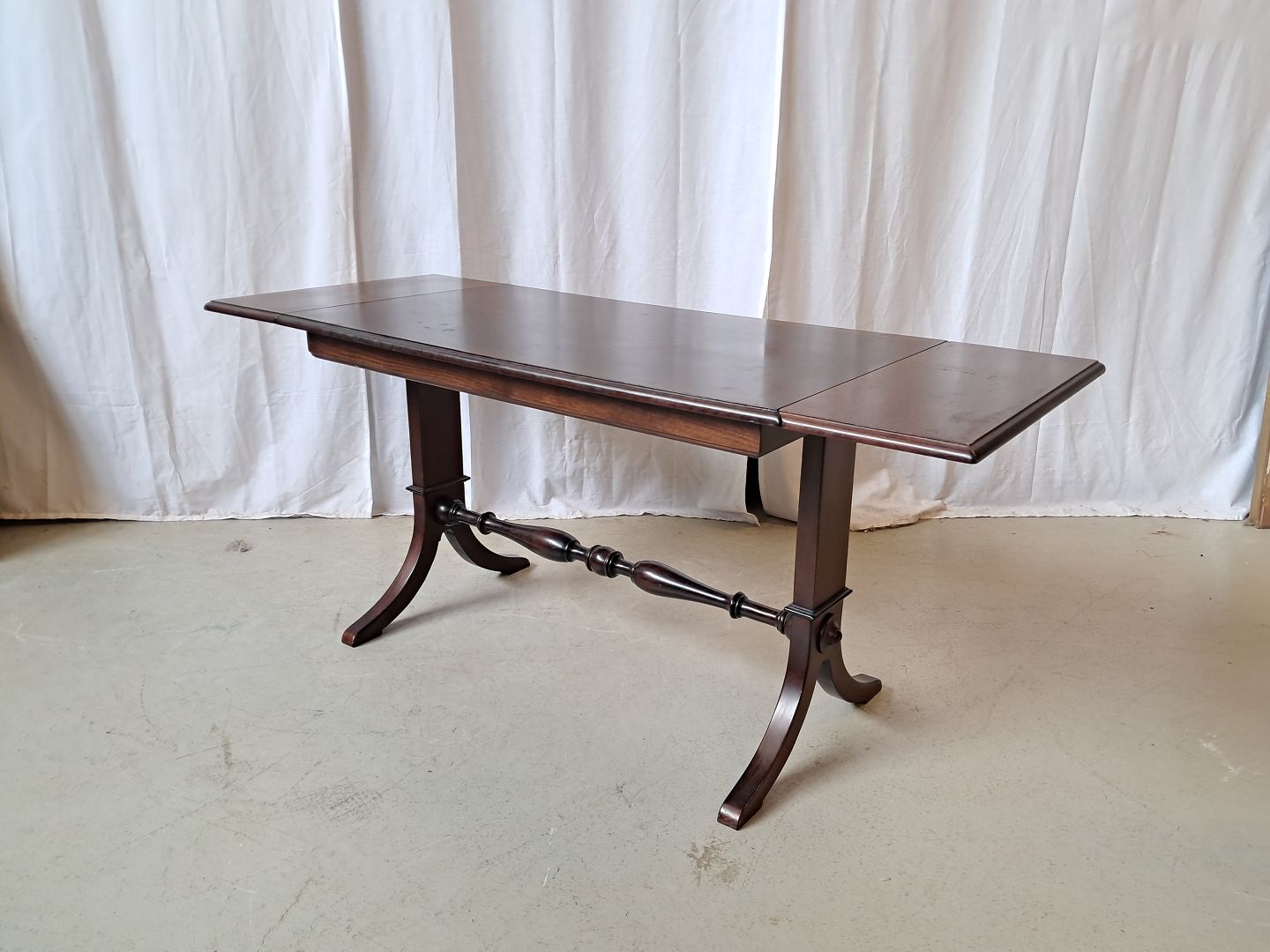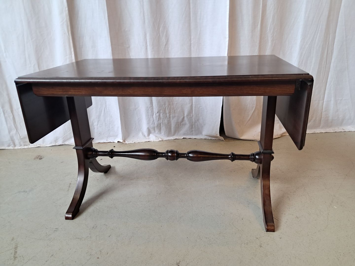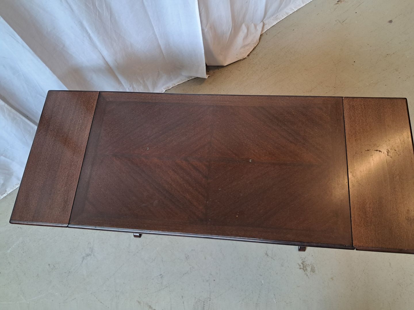 Sofabord i fineret mahogni, fra 1980erne.