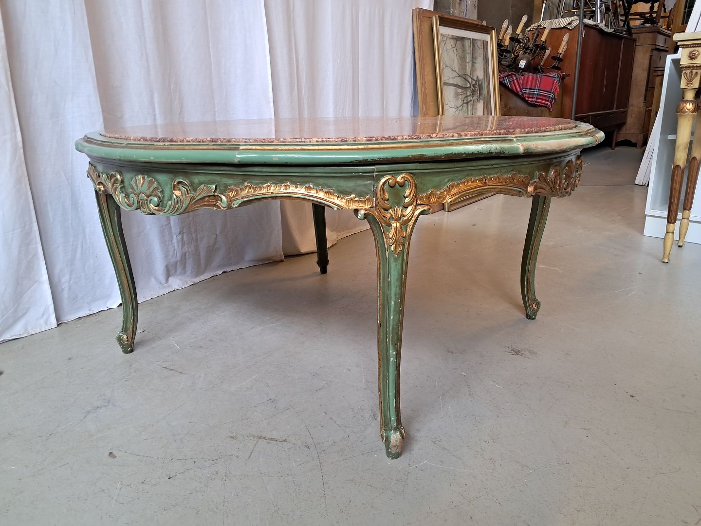 Malet sofabord med marmorplade, fra 150erne.