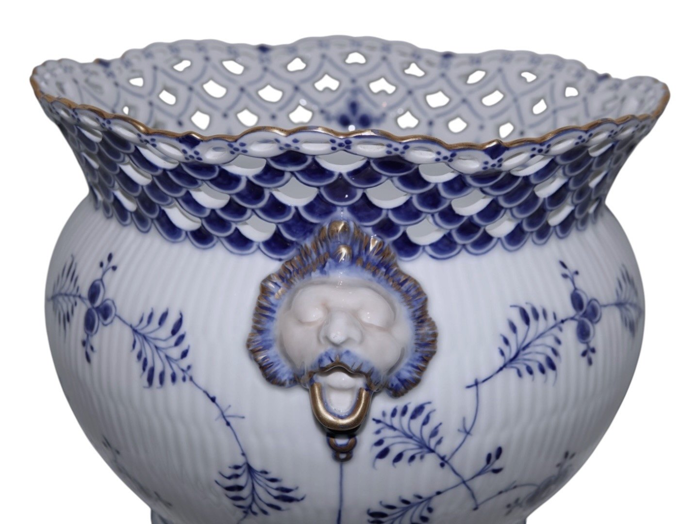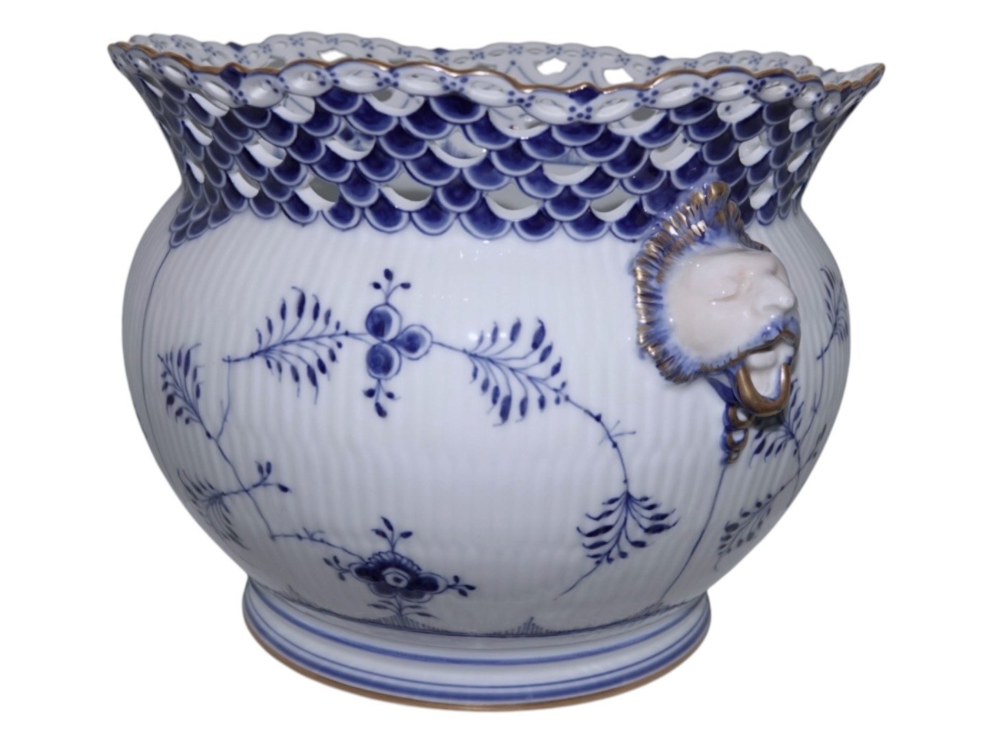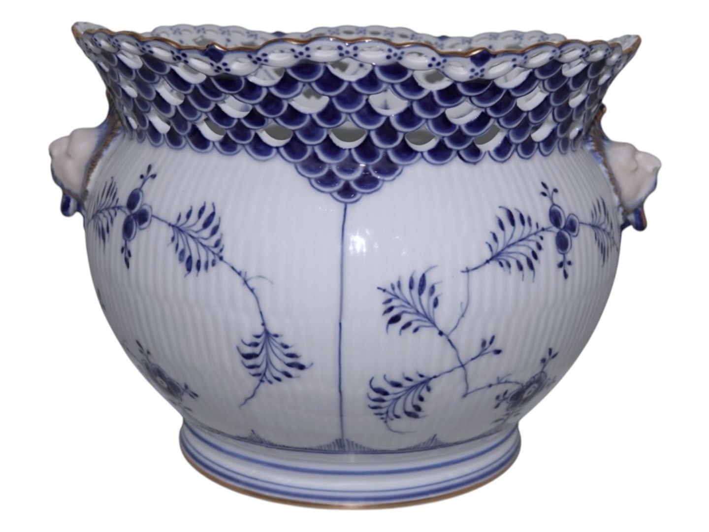 Royal Copenhagen Musselmalet Helblonde med guldkant, ekstra stor og meget sjælden urtepotteskjuler.