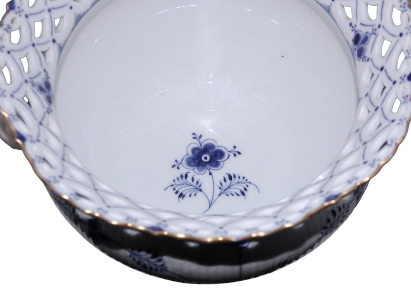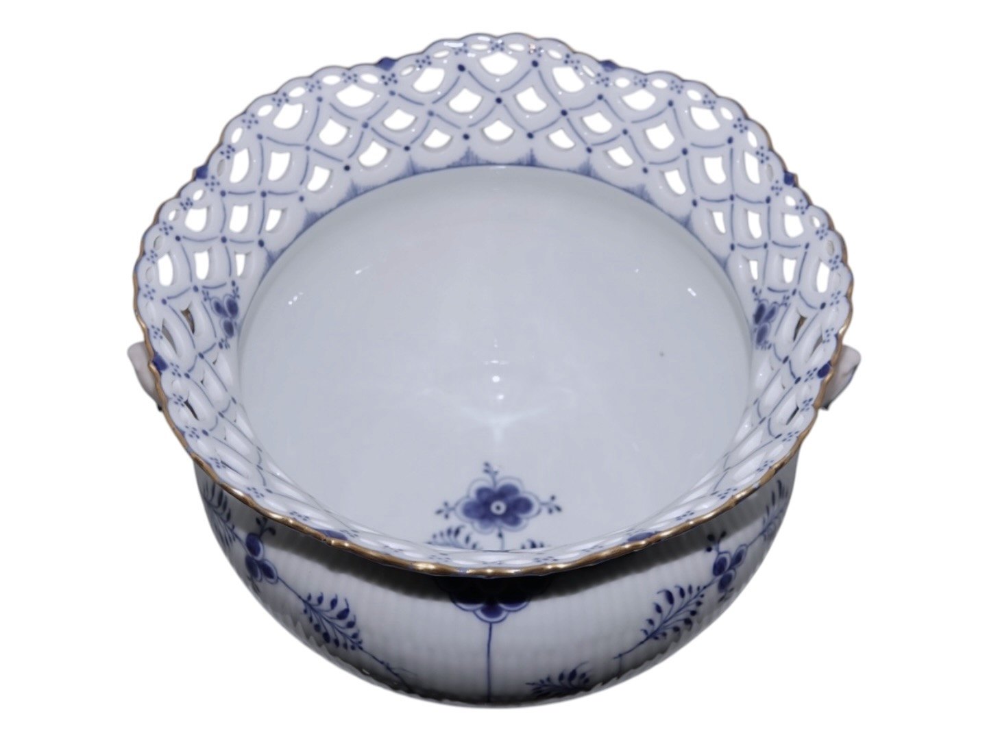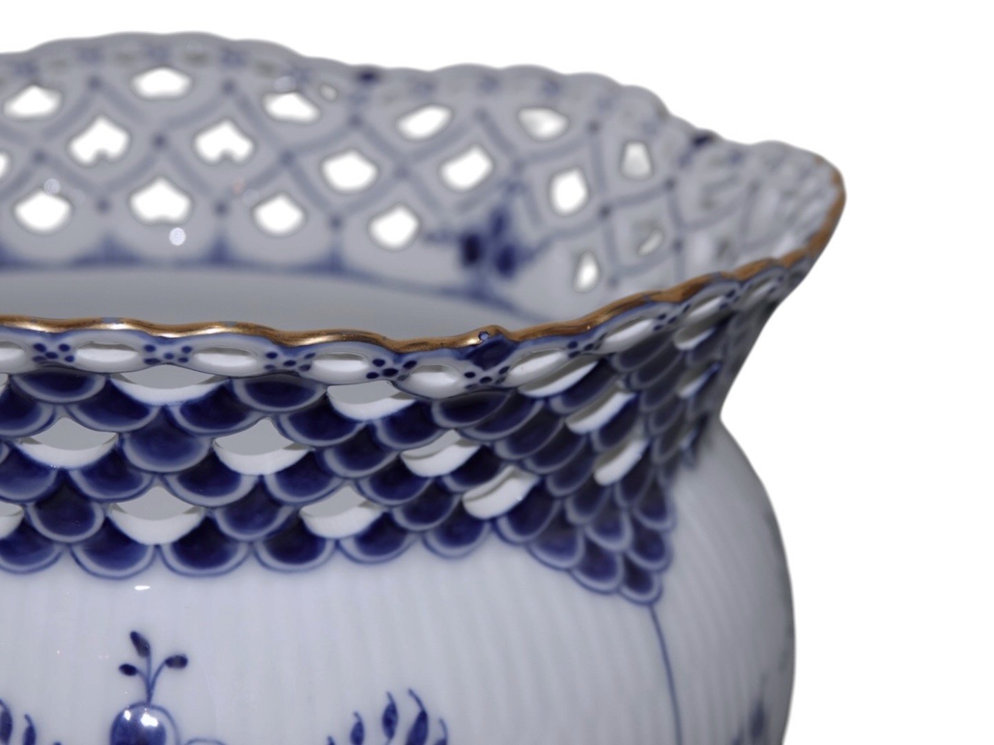 Royal Copenhagen Musselmalet Helblonde med guldkant, ekstra stor og meget sjælden urtepotteskjuler.