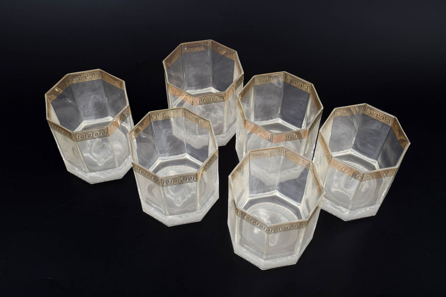 Sæt af seks whiskyglas i klart glas med karakteristisk Medusa-motiv fra Versace-serien produceret af Rosenthal.