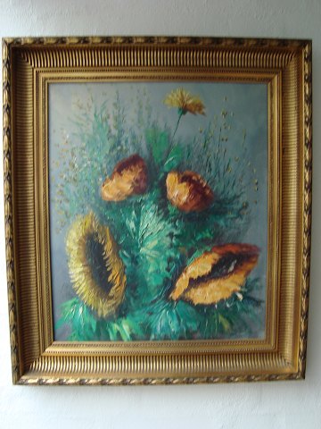Maleri i rigt udsk. guldramme af Arling Gade "Solsikker"