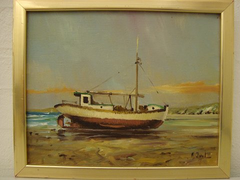 Maleri - "Fiskekutter på stranden" af Kim Juul.