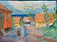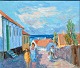 Nielsen, Svend (1908 - 1993) Danmark: Scene fra Rønne med personer. Bornholm.