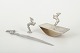 Små skåle i horn monteret med sølvkant (stemplet) til kaviar.