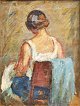 Maleri af Ejnar Ploug - Pige der kigger ud over vandet.