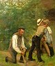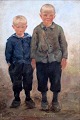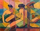 Maleri af Niels Walseth - 2 fiskere i samtale på stranden.