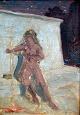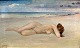 Pedersen, Hugo V. (1870 - 1959) Danmark. Strandparti med nøgen kvinde.
