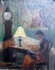 Madsen, Viggo (1885 - 1954) Danmark: Interør med kvinde, Skagen.