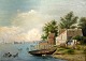 Maleri af Caprino - Sydlandsk byparti med personer.