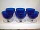 6 dessertskåle i blat glas på klar fod. Sælges kun samlet.