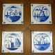 Firpas med hollandske fliser, dekoreret med bygninger. Blåmalet. Medio ...