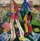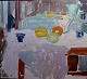 Knud Hansen. Moderne komposition i stærke farver og former. Udstillet.