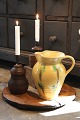 Gammel italiensk vin kande i keramik med fin gul glasur og hank.