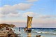 Neumann, Johan (1860 - 1940) Danmark: En fiskerbåd på kysten.