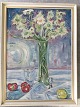 Maleri af H. J. Korn - Opstilling med blomstervase samt frugt 1934,