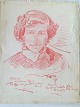 Tegning af Hans Jørgen Korn - Portræt af Helen Nielsen 1952.
