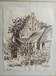 Tegning af Lise Færch - Parti fra Korup Kirke ved Odense.