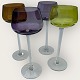 4 højstilkede farvede vinglas.