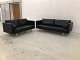 MH 321 2×3 Pers. Sofaer i sort prestige læder og på firkantet ben i børstet ...