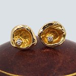 C. Antonsen; Par øreringe af 14 kt. guld med diamant