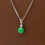 Halskæde i 14 kt. hvidguld med vedhæng i 18 kt. hvidguld med diamant og jadeit