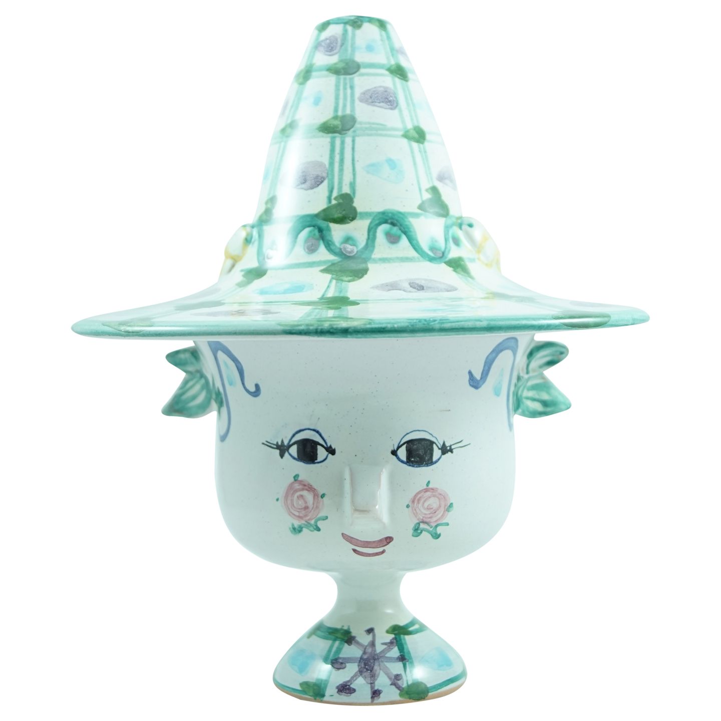 Bjørn Wiinblad; Figur, i form af dame med hat, af glaseret lertøj.