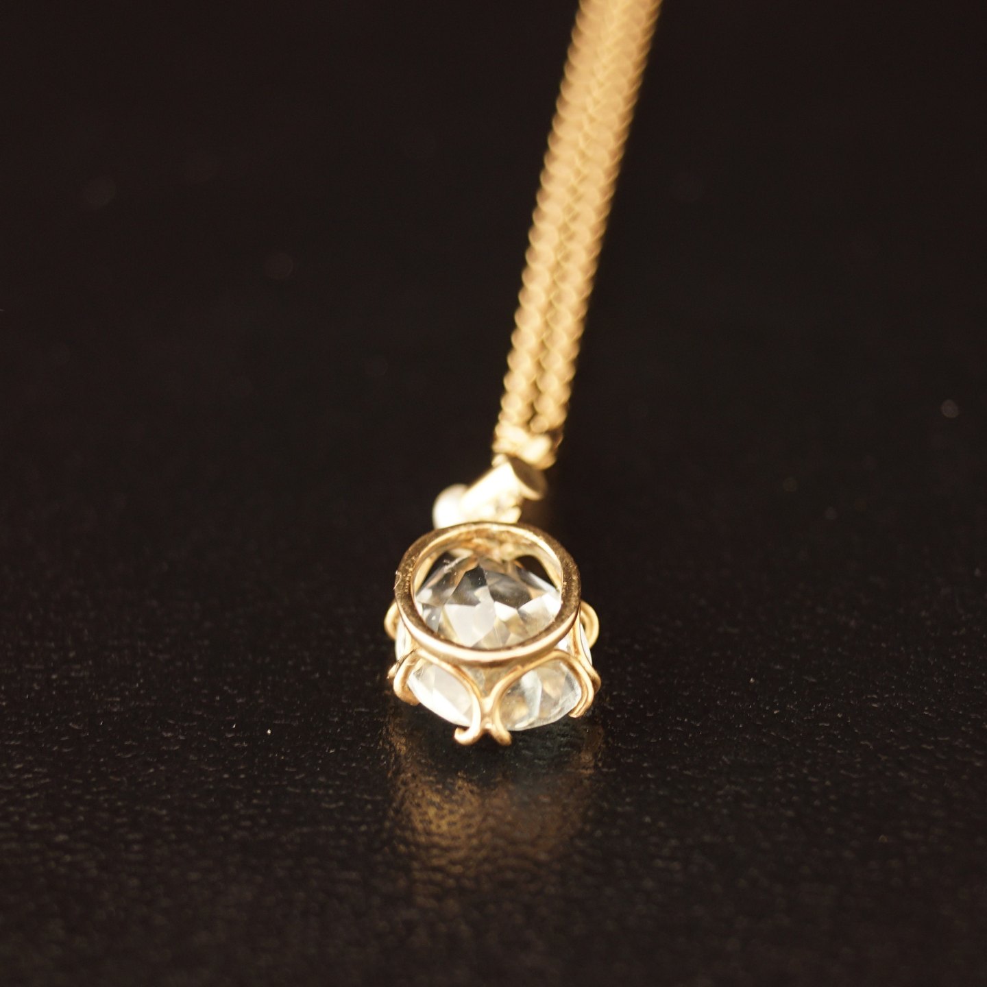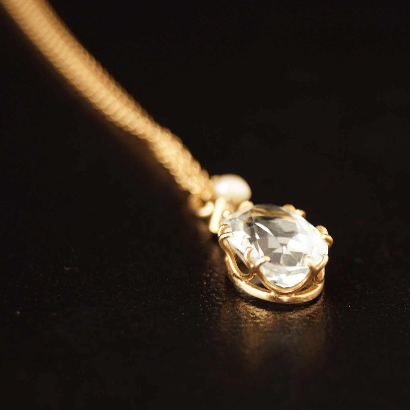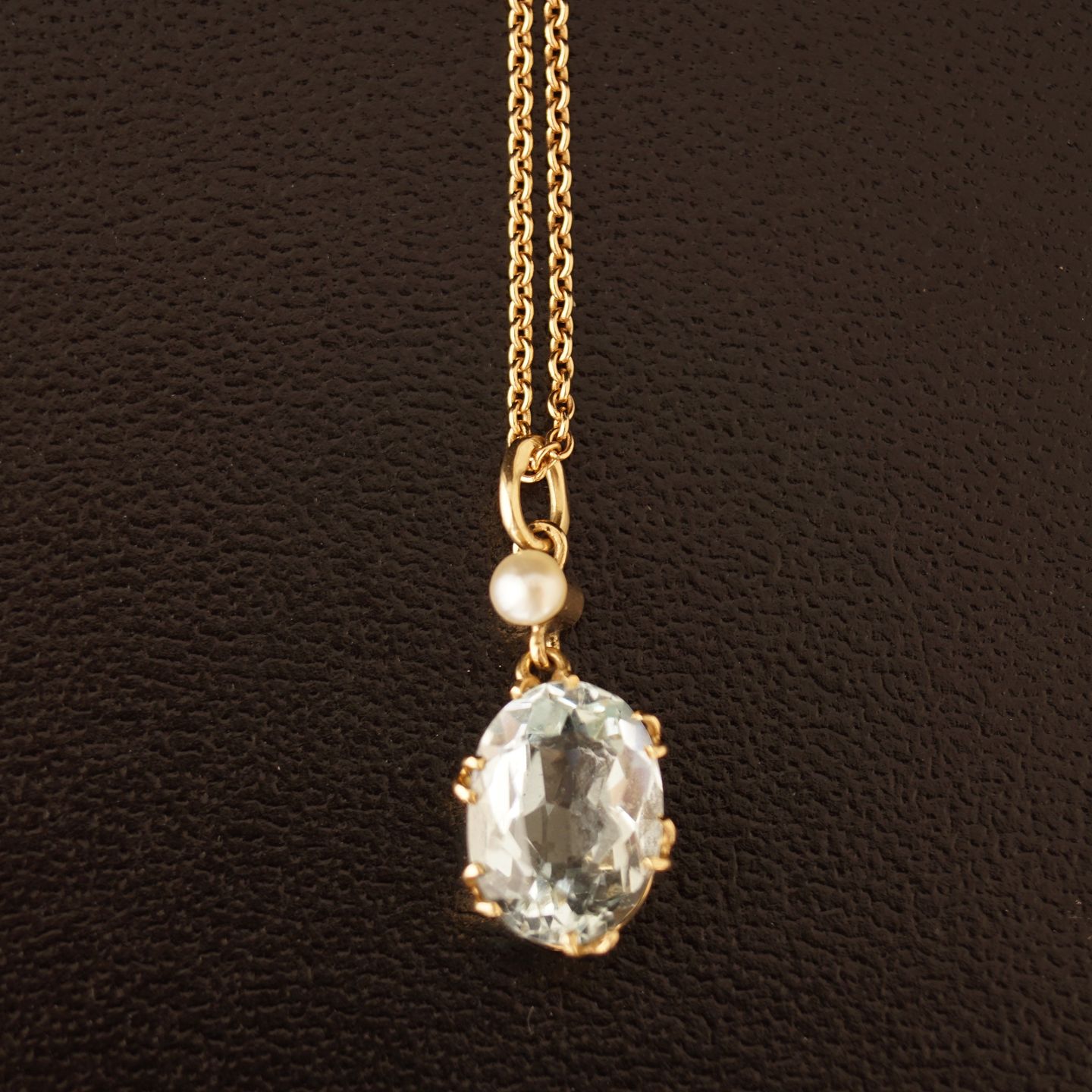 Halssmykke med akvamarin og perle med guldkæde 14 karat.