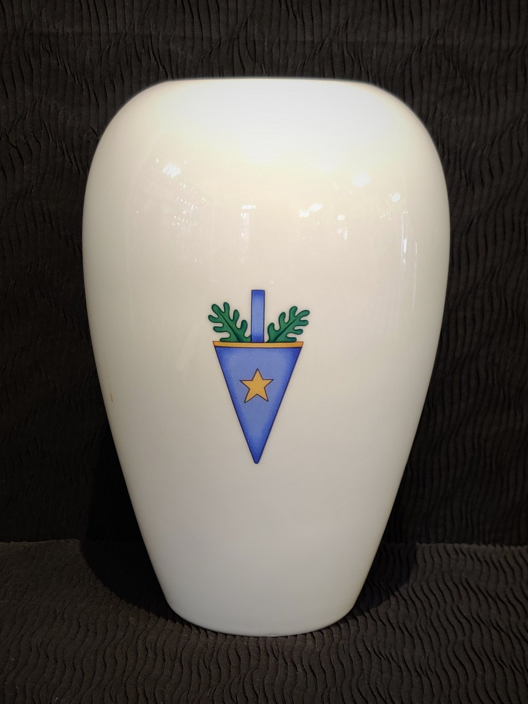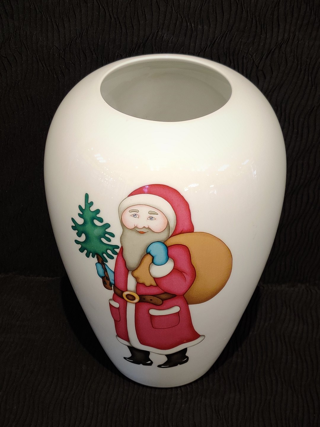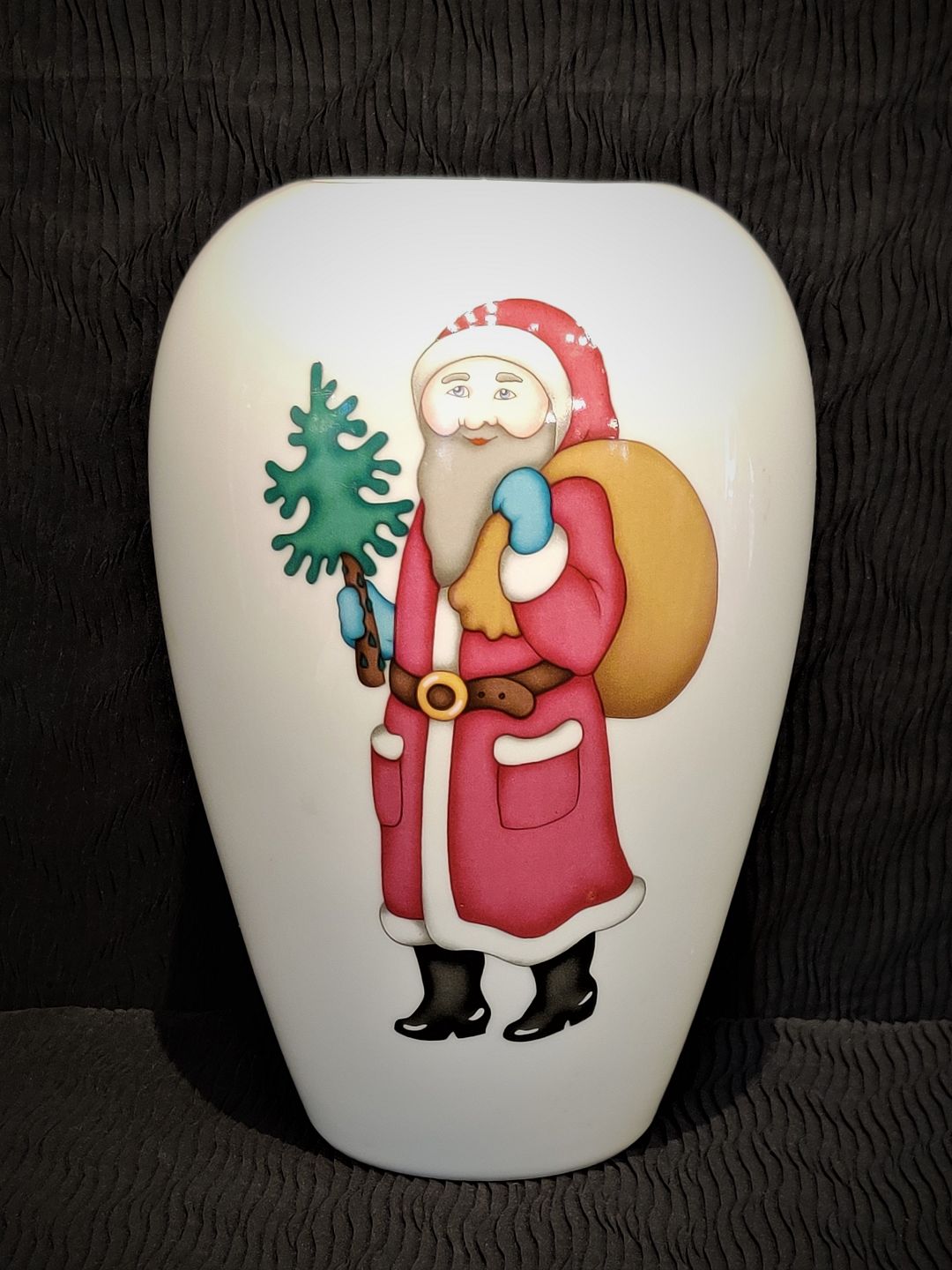 Julevase. Dekoreret med motiver af julemand samt kræmmerhus.