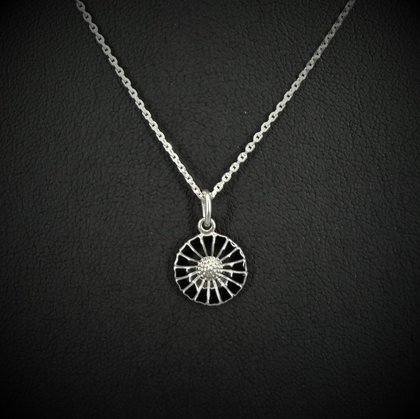 Georg Jensen; Margueritsmykke. Halskæde med vedhæng i sterling sølv med sort emalje.