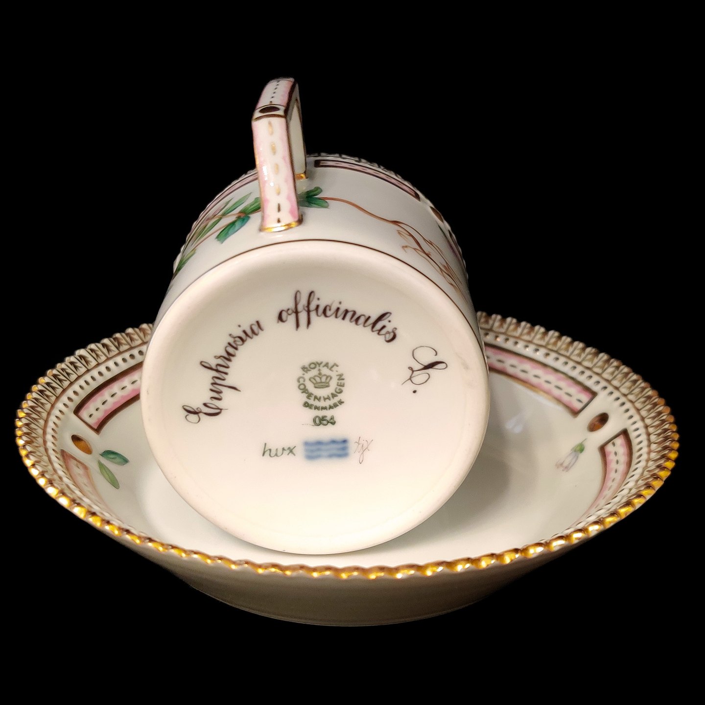 Dekoration: Euphrasia officinalis L. (Øjentrøst). Kop h. 6,5 cm. Underkop diam. 14 cm.