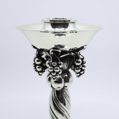 Georg Jensen; Par lysestager i sterlingsølv, prydet med druer.