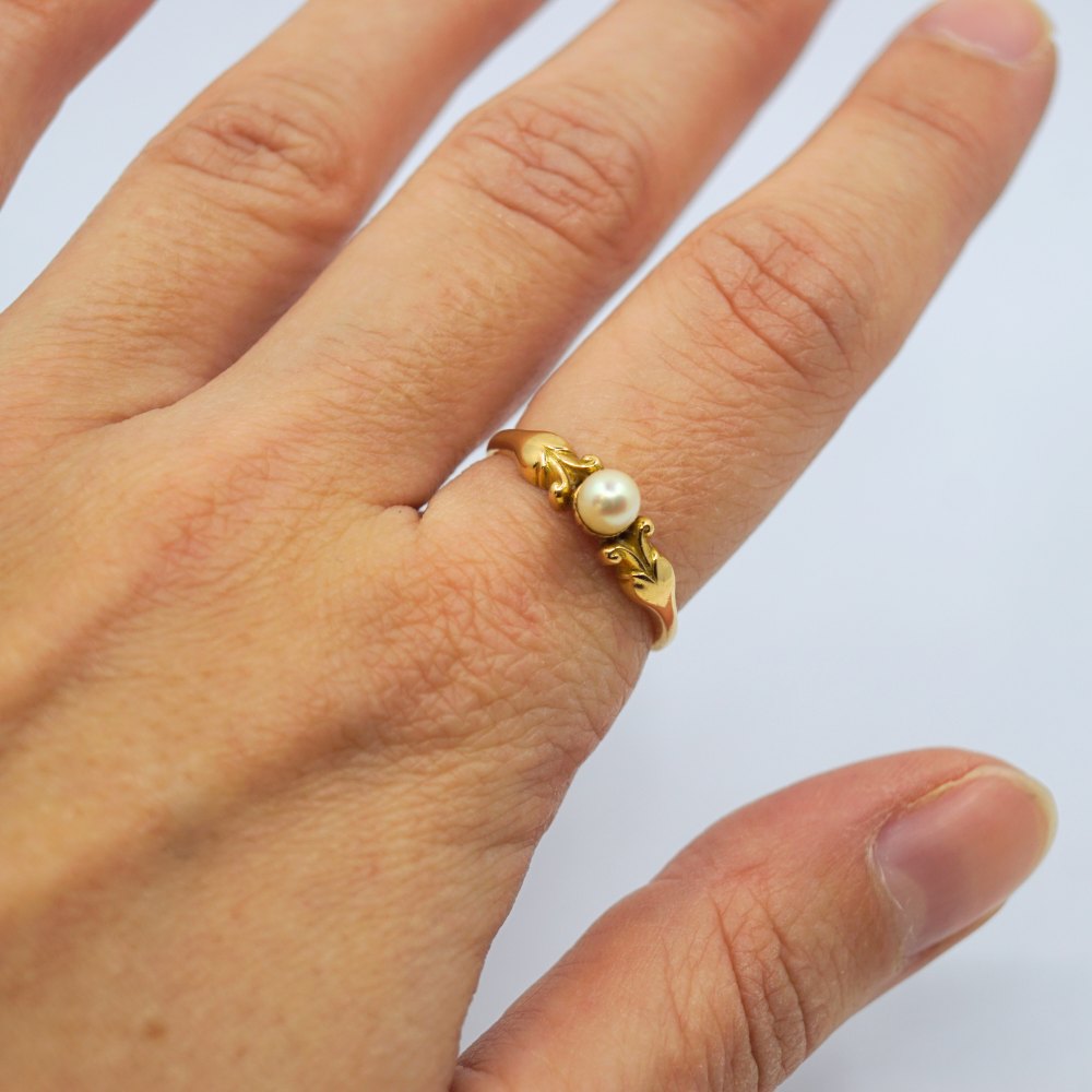 Georg Jensen; Ring af 18 kt. guld med perle nr. 180