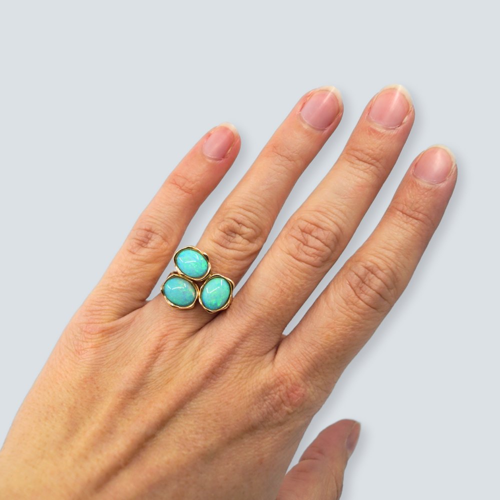 Carl Antonsen; Ring i 14 kt. guld med tre opaler.