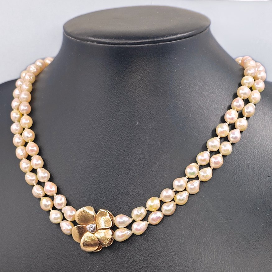 Ole Lynggaard, Charlotte Lynggaard; Blomsterlås af 14 kt. guld med brillant, inklusiv perlekæde