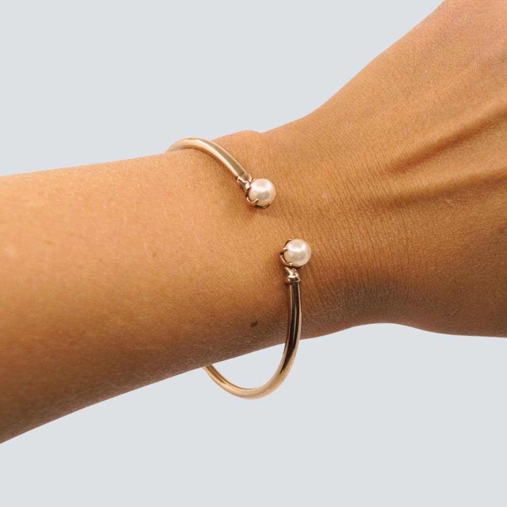 Bernhard Hertz; Armring af 8 kt. guld. Prydet med to perler.