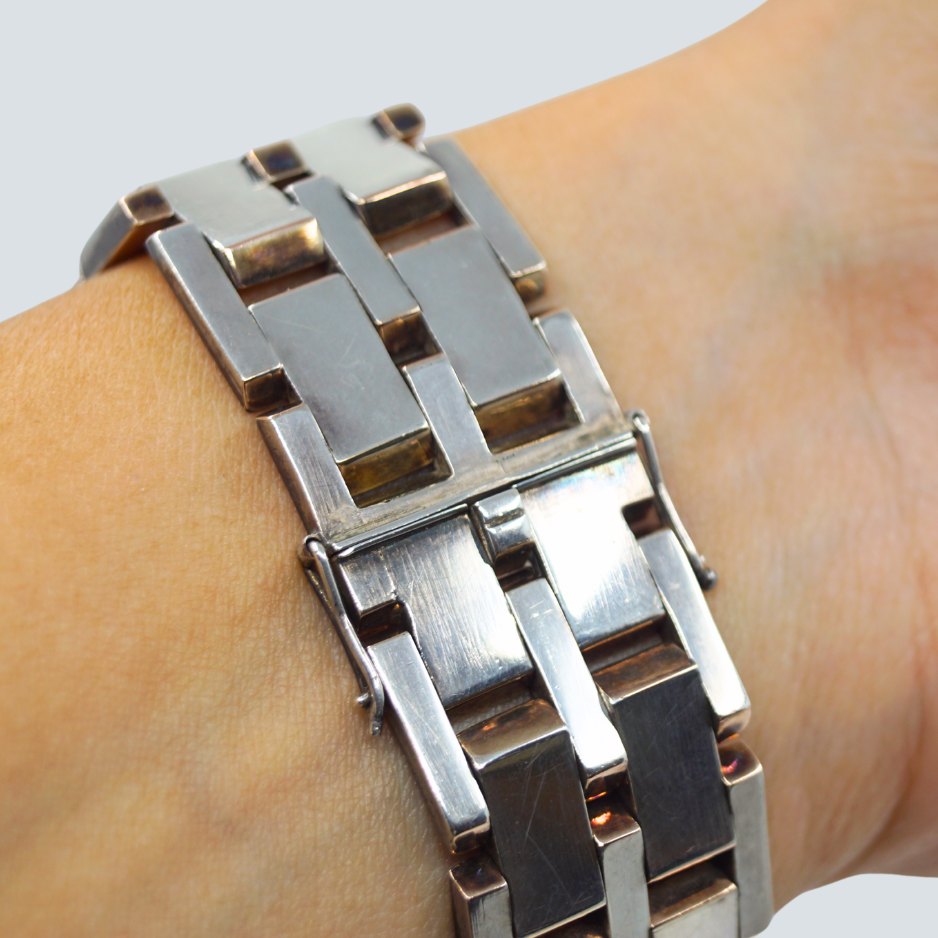 A. Michelsen; Blokarmbånd af sterlingsølv. Ca. fra 1970.