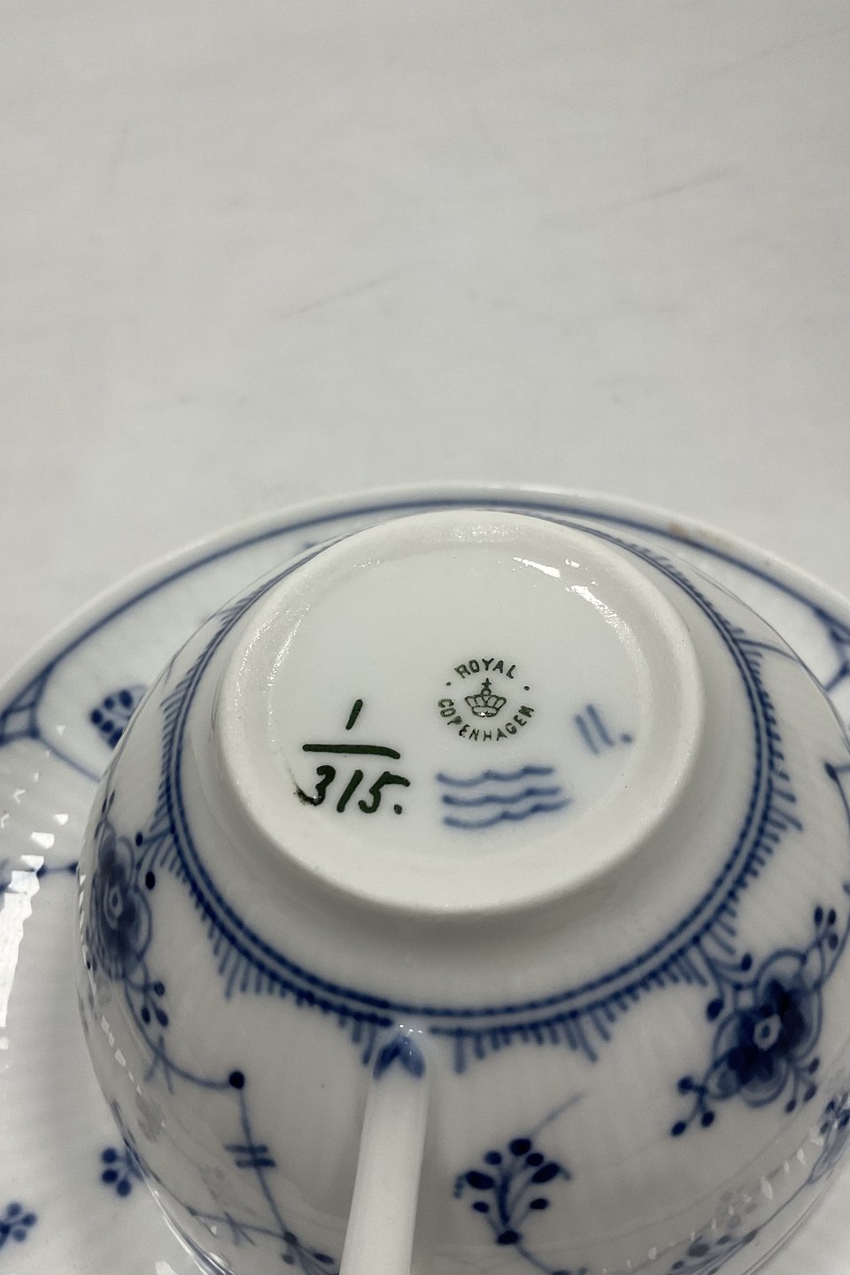 Royal Copenhagen Musselmalet Riflet Tekop og Underkop No 315 med indvendig bemaling .