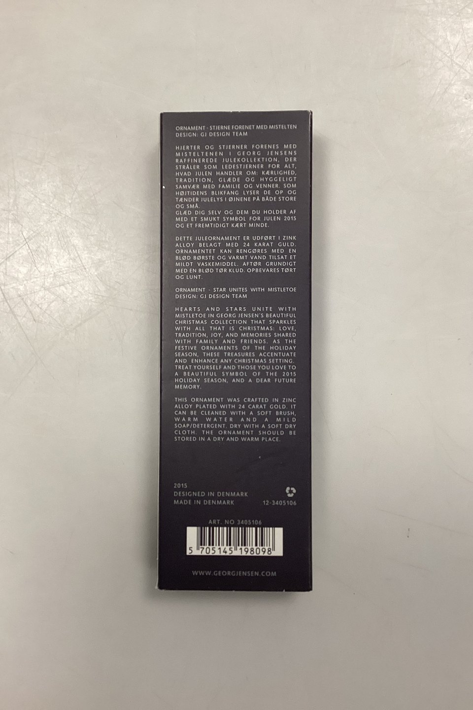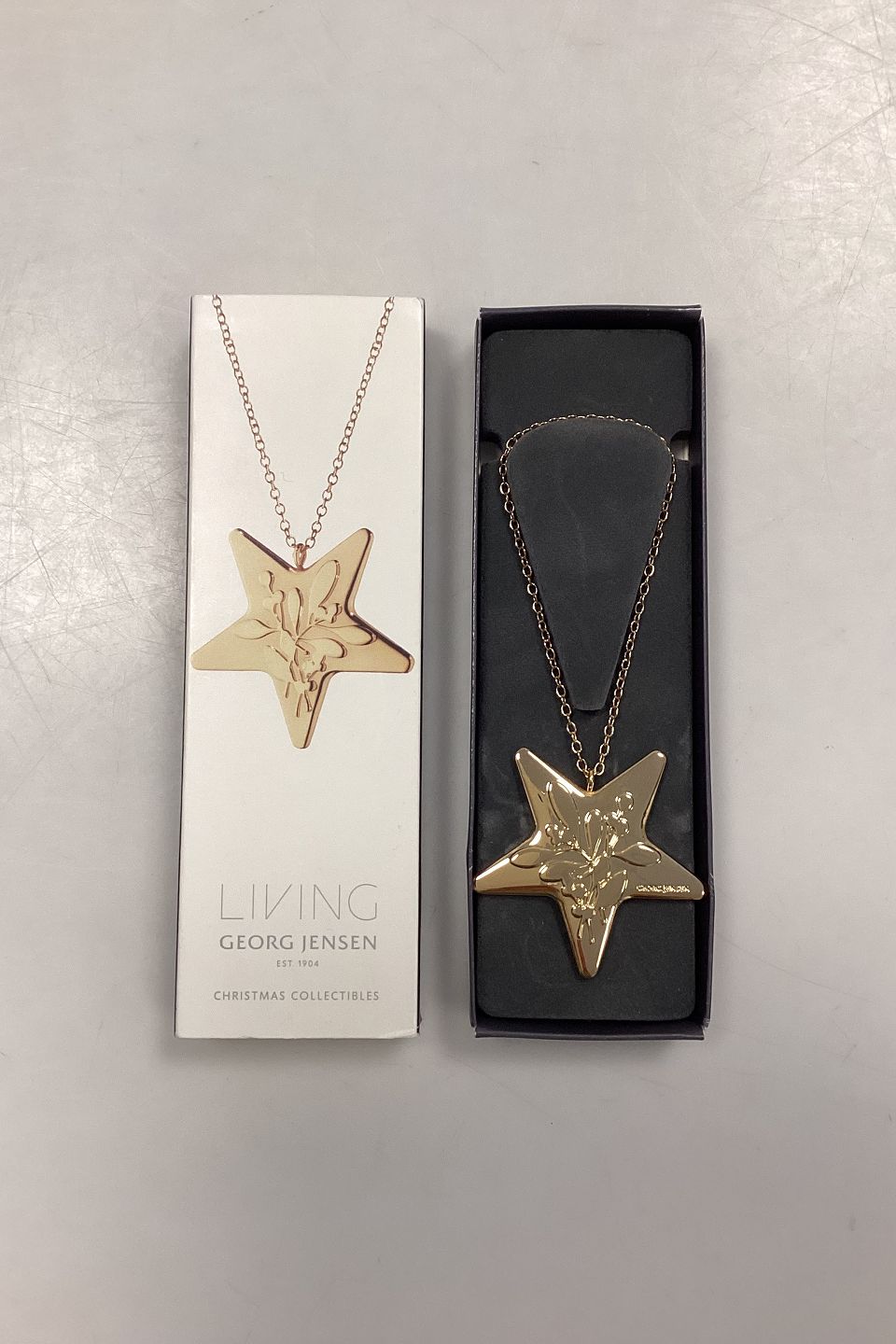 Georg Jensen Christmas Collectibles Ornament - Stjerne forenet med Mistelten 2015. Udført i zink alloy belagt med 24 karat guld.